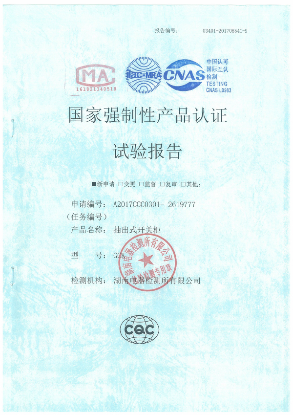 抽出式開關(guān)柜試驗(yàn)報(bào)告